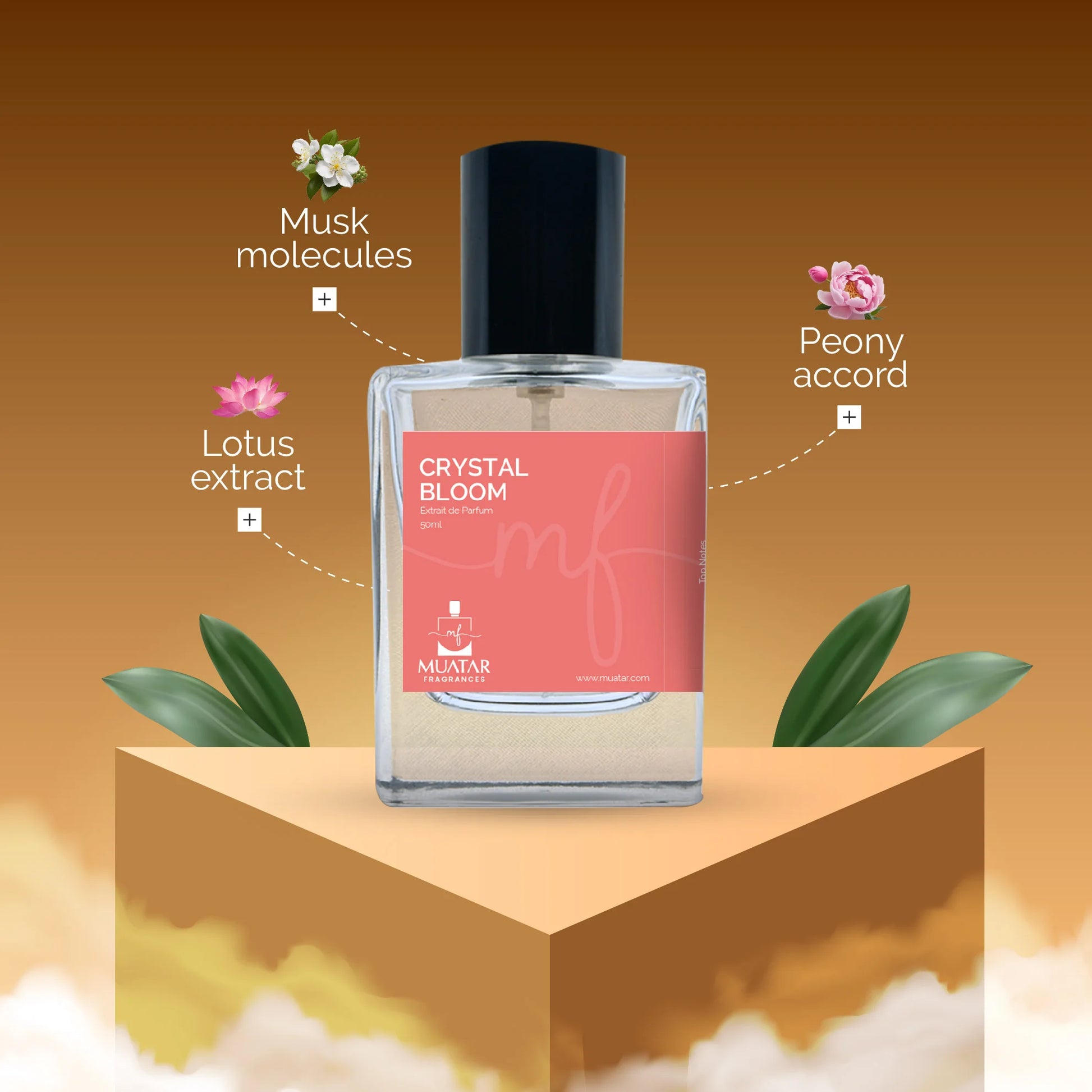A sparkling fruity‑floral featuring yuzu and pomegranate; a heart of peony, magnolia, and lotus; and a warm amber‑wood base—light, feminine, and breezy.