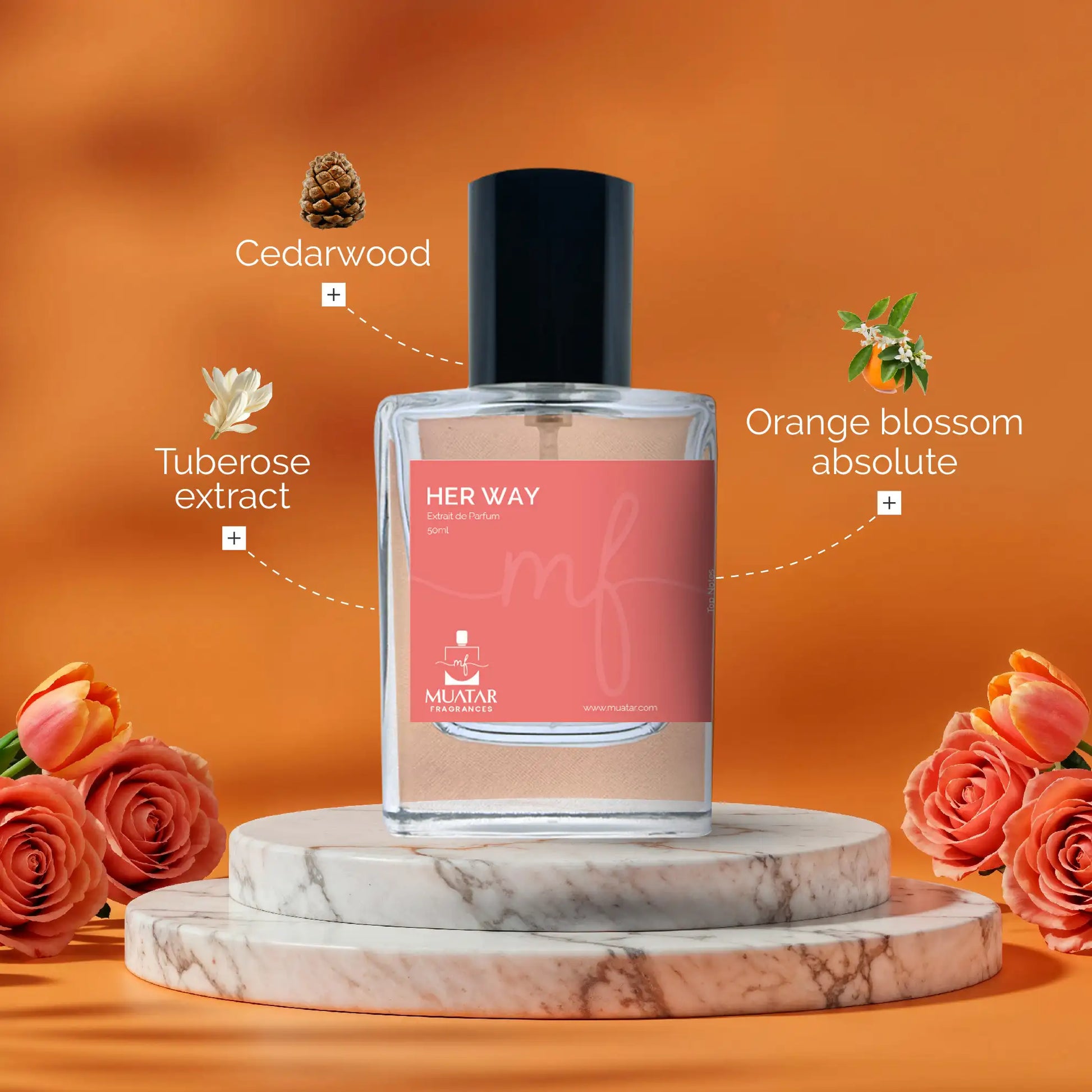 A modern floral featuring bergamot and orange blossom; a heart of tuberose and jasmine; and a base of cedarwood, vanilla, and white musk—optimistic, personal, and outward‑looking.