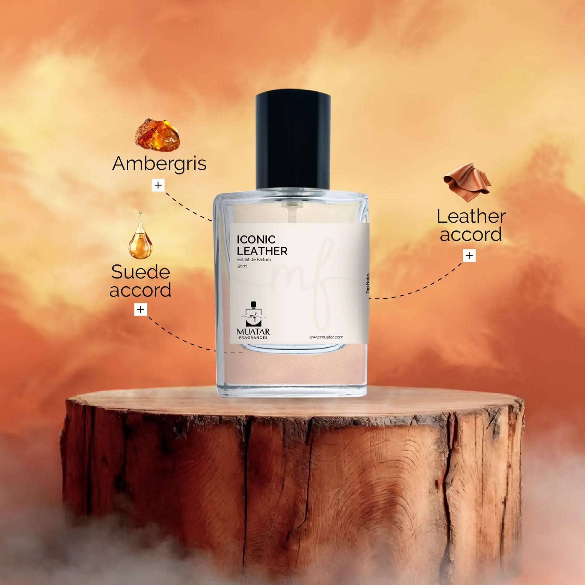 A smoky, opulent leather scent accented by tart raspberry and spicy saffron; a heart of suede-like leather and jasmine; and a rich base of amber and woody accords—dark, sensual, and unapologetically bold.
