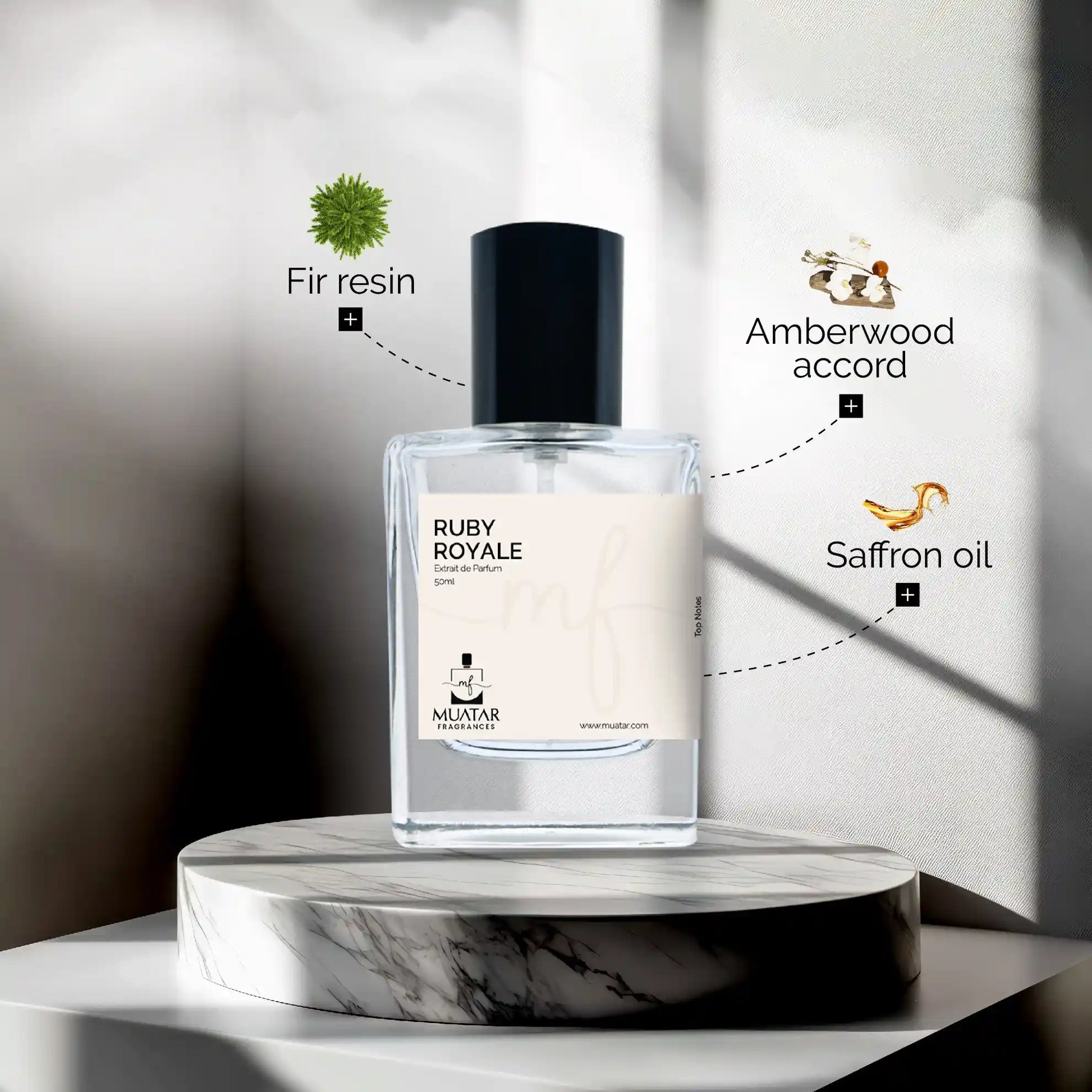 A luxurious amber floral with saffron and jasmine top notes; a rich amberwood and ambergris heart; and a crystalline base of fir resin, cedarwood, and musk—radiant and unforgettable.